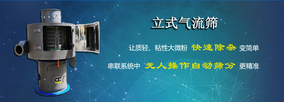 【產(chǎn)品介紹】:立式氣流篩是利用粉料微粒質(zhì)量小而輕、易漂浮、流動(dòng)性好的特點(diǎn),將其充分?jǐn)U散到氣流中,粉料不再團(tuán)聚,而是以單個(gè)微粒依次隨氣流透過篩網(wǎng),因此氣流篩的產(chǎn)量大、效率高、不粘網(wǎng)、不堵網(wǎng)孔、細(xì)度精確。