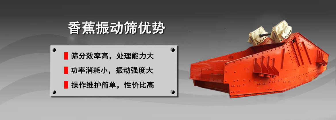 香蕉振動(dòng)篩在入料端有一斜坡面,先以34°開始,緊接著以一定數(shù)目的角度下降到大約為10°的出料端為止。篩面采用不同傾角的折線形式,從入料端到出料端物料層厚度是不變。各段篩面上物料量與流速比值穩(wěn)定、料層較高,呈現(xiàn)均勻狀態(tài)篩分效率顯著提高,比相同有效面積篩分機(jī)的處理量提高1-2倍,對于細(xì)粒含量高,特別是物料中料度占分級粒度尺寸小于1/2的物料含量較大時(shí),香蕉型振動(dòng)篩分機(jī)具有極高的篩分效率。
